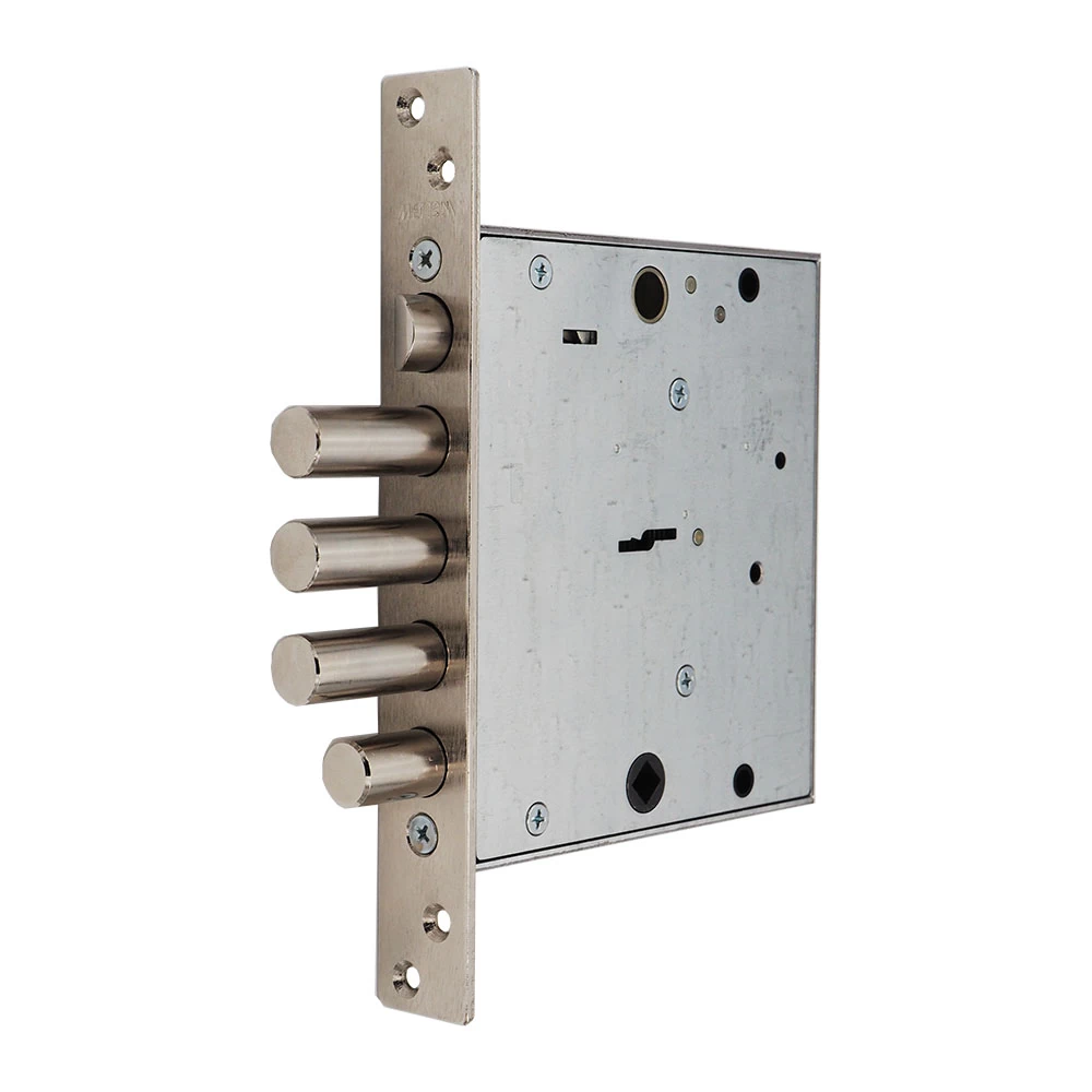 Замок врезной сувальдный ЗВ9 144.0.0 имеет 3 класс безопасности, предназначен для установки во входные двери всех видов. Рекомендуются к применению в металлических дверях, в т.ч. укреплённых. Защёлка позволяет устанавливать данные замки в качестве основных запирающих устройств в двери. Замок запирает дверь тремя стальными ригелями и задвижкой. Диаметр ригелей засова и задвижки — 16 мм. Ригели выдвигаются из корпуса замка на 40 мм и 24 мм соответственно. В одном из ригелей расположен закалённый стальной стержень, обеспечивающий надёжную защиту от перепиливания. При помощи данного замка дверь запирается на четыре полных оборота (возможно неполное запирание двери на два оборота), а также на ночную задвижку (с внутренней стороны двери).