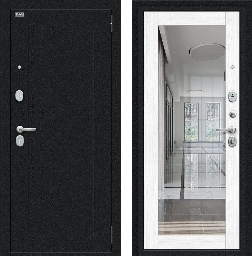 Надежная входная Дверь Браво Флэш Букле черное/Snow Melinga премиум класса по цене 32 637 руб. Большая толщина стали защитит от проникновения в ваш дом, квартиру или коттедж. Используется очень качественная фурнитура: замки, цилиндры, ручки, защелки. Покрытие и отделка двери изготовлено под внимательным контролем производителя. Дверь имеет долгий срок службы и гарантию.