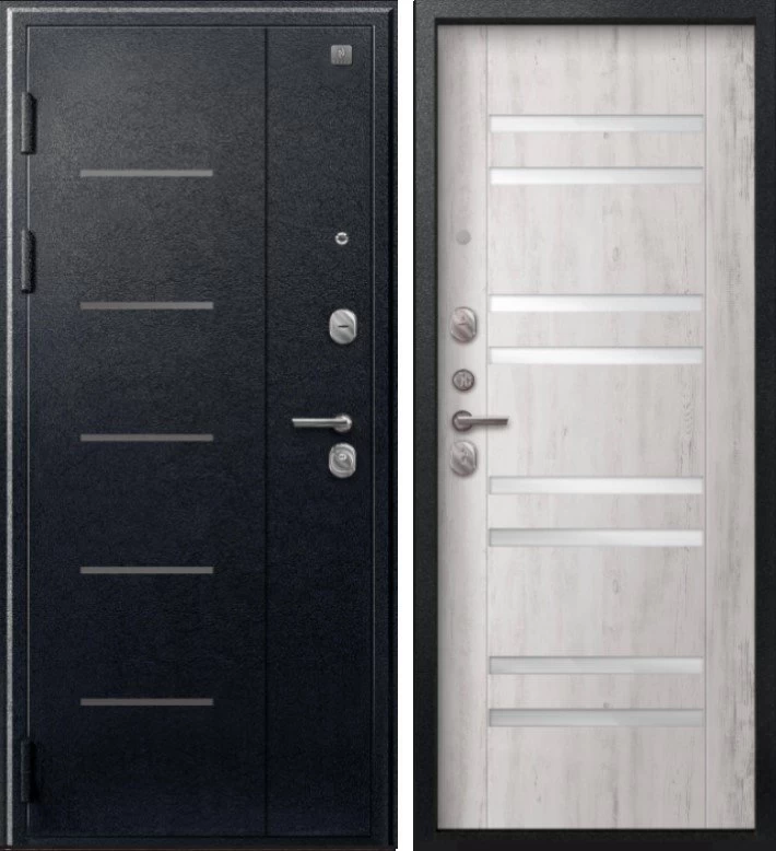 Надежная входная Дверь V-07 Черный муар - Дуб пепельный премиум класса по цене 41 687 руб. Большая толщина стали защитит от проникновения в ваш дом, квартиру или коттедж. Используется очень качественная фурнитура: замки, цилиндры, ручки, защелки. Покрытие и отделка двери изготовлено под внимательным контролем производителя. Дверь имеет долгий срок службы и гарантию.
